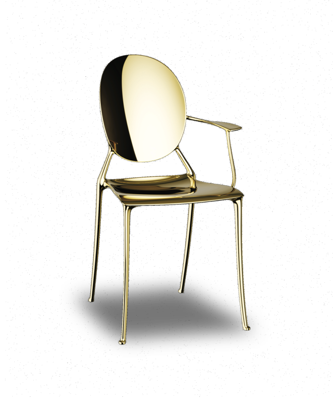 Driven by a “passion du minimum”, Philippe Starck has refined the structure of the famous seat to the extreme, seeking the absolute purity of its silhouette, emphasized even more by the lightness of aluminum, of which he values the nobility and durability, as well as its precious simplicity.